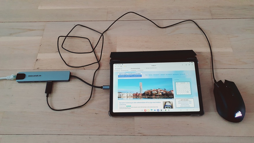 Surfplattan driver adaptern utan problem och gör det samtidigt möjligt att ansluta extern mus för den som inte tål att använda fingrarna direkt på plattan.